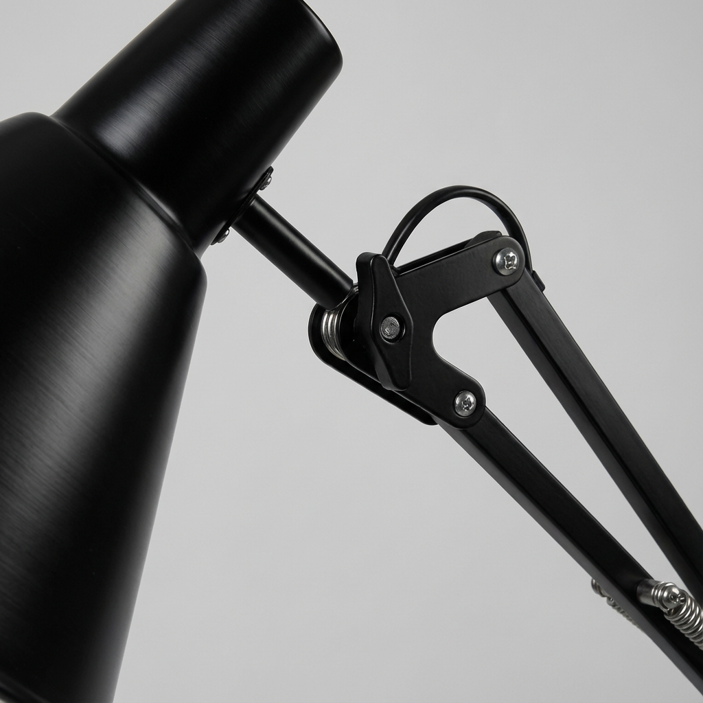 Das schlanke Metallgestell in Schwarz wirkt zeitlos und fügt sich harmonisch in moderne, industrielle oder minimalistische Einrichtungsstile ein. Ein integrierter Fußschalter ermöglicht eine komfortable Bedienung im Alltag.